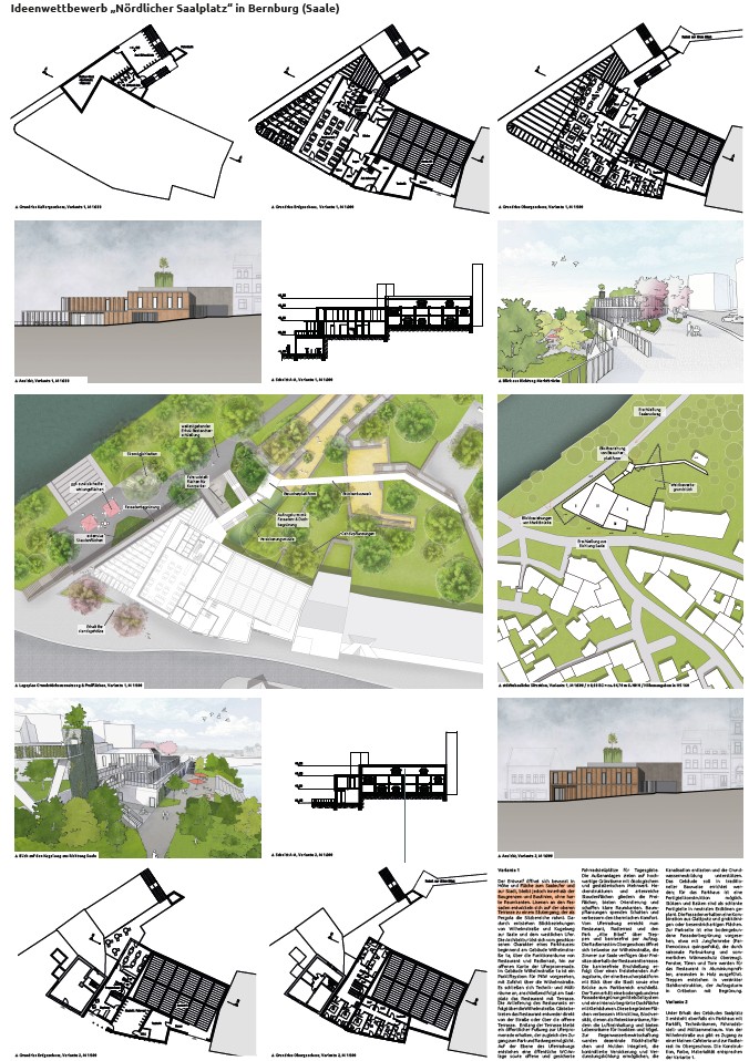 Das Projekt öffnet sich bewusst zur Saale und zur Stadt und schafft mit Restaurant, Radlerrast, Uferpromenade und Parkhaus einen lebendigen Ort für Besucher und Bewohner. Offene Terrassen, Blickachsen zum Wasser und hochwertige Grünräume verbinden Architektur und Landschaft. Begrünte Fassaden, Regenwassermanagement und barrierefreie Wege sorgen für ein nachhaltiges, klimafreundliches und nutzerorientiertes Gesamtkonzept.